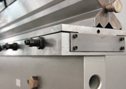 產(chǎn)品特點: 主機選用WC67Y系列折彎機; 可配備DELEM公司生產(chǎn)的折彎機專用數(shù)控系統(tǒng)(或客戶指定其它剪折數(shù)控系統(tǒng)); 后擋料(X),滑塊行程(Y)控制均電腦自動控制; 后擋檔采用普通絲桿和精密滾珠絲桿兩種。